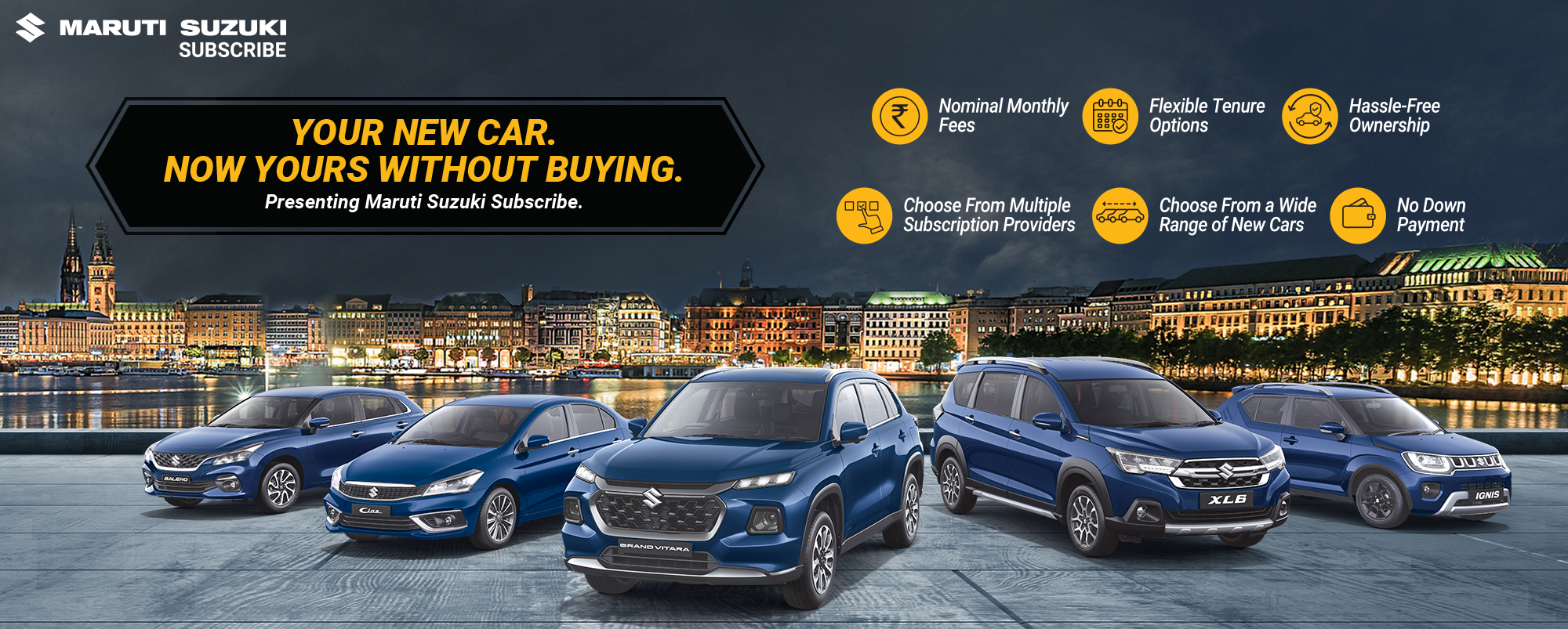 Maruti Suzuki Subscribe enables all customers to enjoy driving their preferred Maruti Suzuki cars without having to deal with all the financial responsibilities that come with owning a car.All you need to do is opt for a monthly subscription plan at a fixed monthly fee, which includes the routine maintenance and insurance costs, and choose a flexible tenure. At MSA Motors in, , Kurnool, all Hatchback, Sedan, SUV, the MUV models line-up includes Baleno, Invicto, EVitara, Jimny, Ciaz, Ignis, Fronx, Grand Vitara, XL6. Here, you will enjoy Maruti Suzuki Subscribe benefits such as: